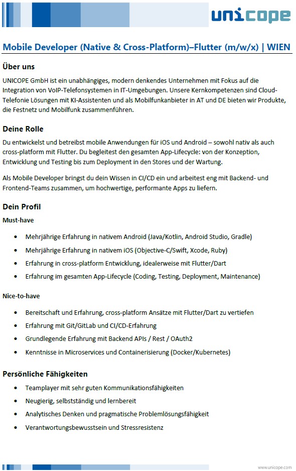 UNICOPE liefert mit Mobiles Festnetz schon jetzt die Kommunikationslösung der Arbeitswelt von morgen – VoIP Telefonie. Aufgeteilt auf 4 Firmenstandorte gestalten aktuell rund 40 Mitarbeiter die Unternehmenskommunikation der Zukunft. Dank der Fokussierung auf VoIP Telefonie bieten wir unseren Kunden schon jetzt Funktionen und Lösungen, die so kein anderer Mitbewerber bieten kann. Wir sind stolz auf unsere Mitarbeiter die diese Leistungen erst möglich machen!
